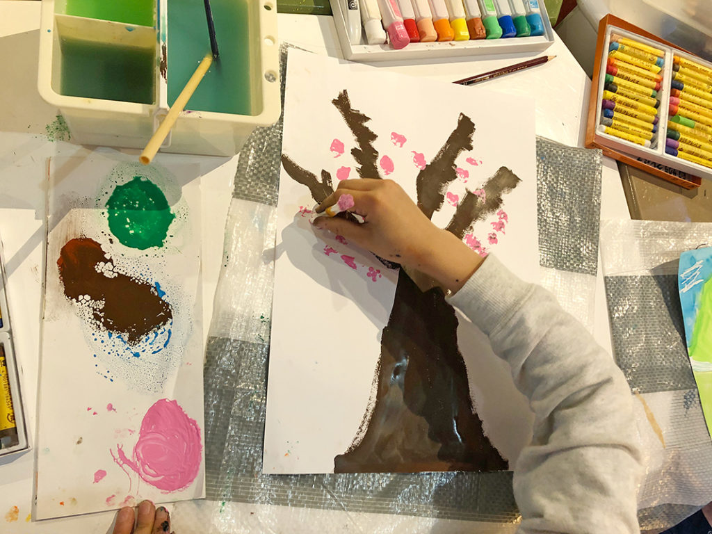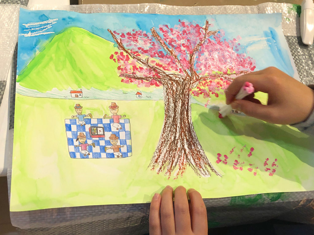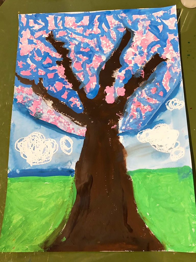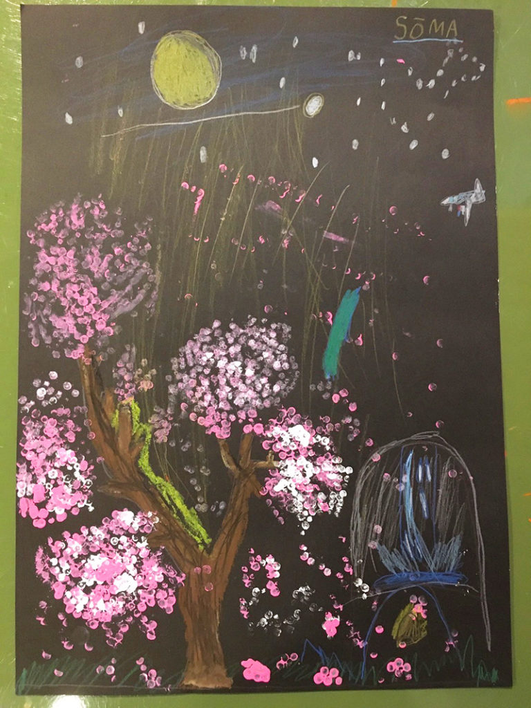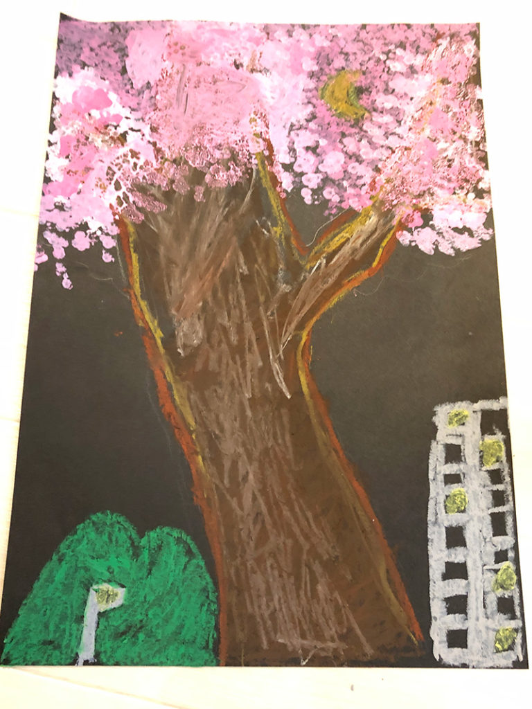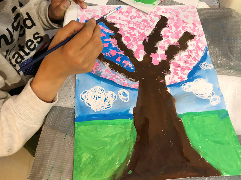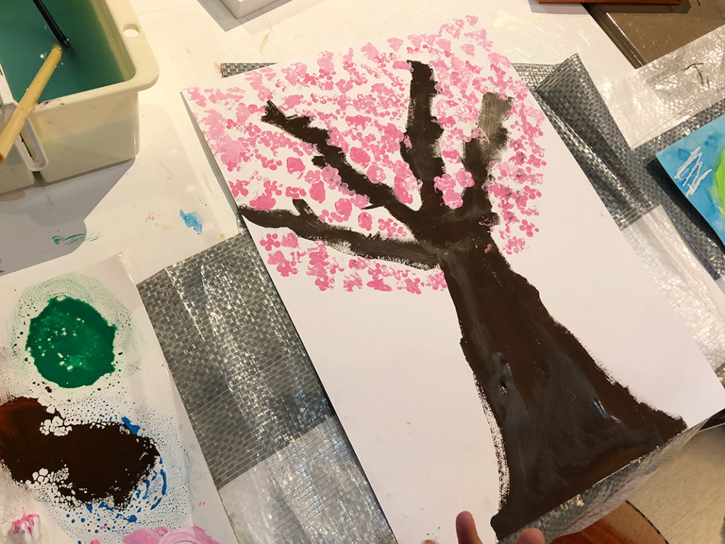 4月のさくら 投稿日: 2024年4月26日2024年4月26日 投稿者: Yukio Kaoru こんにちは。こまこまアートです。 今年は例年より寒さが続いたこともあってさくらの見頃は4月となりましたね。こまこまアートでも4月の課題として桜の木を描きました。 花の部分は綿棒を束ねたもので「ポンポン」 黒い画用紙に描けば夜桜に! 皆さんは今年の桜を楽しみましたか? こまこまアートはこれからも「今だからこそ」描ける楽しめる課題を工夫して取り組んでいきたいと思います。