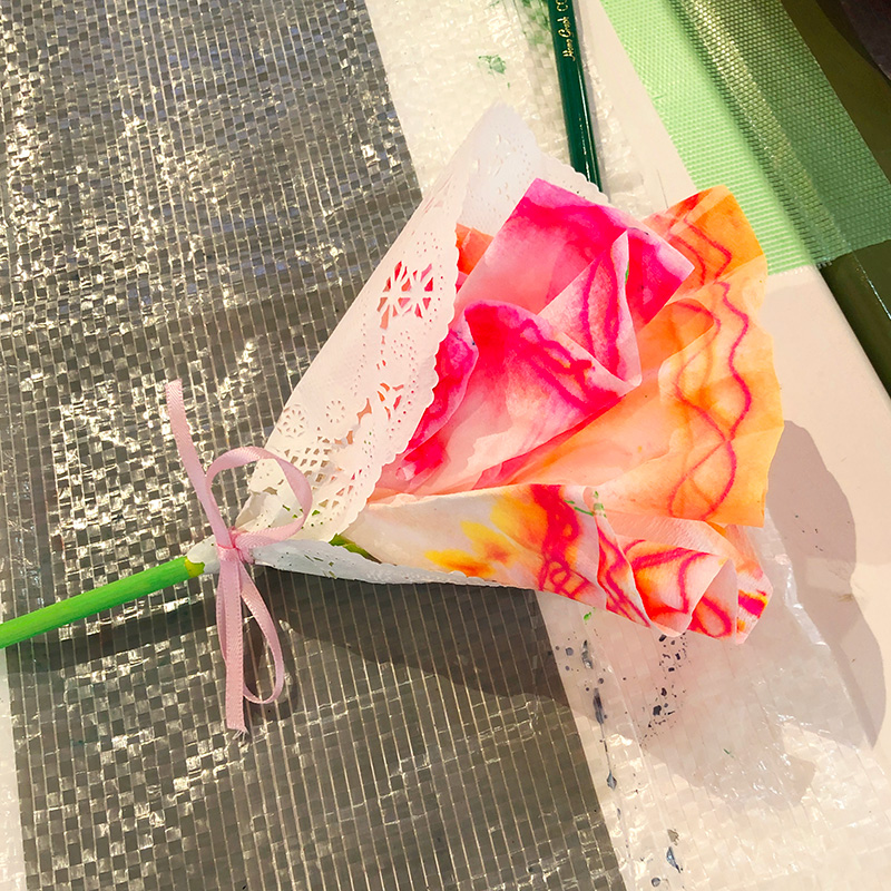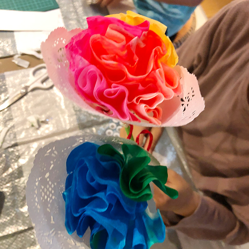 花びらの素材は・・・白いコーヒーフィルターを使います!