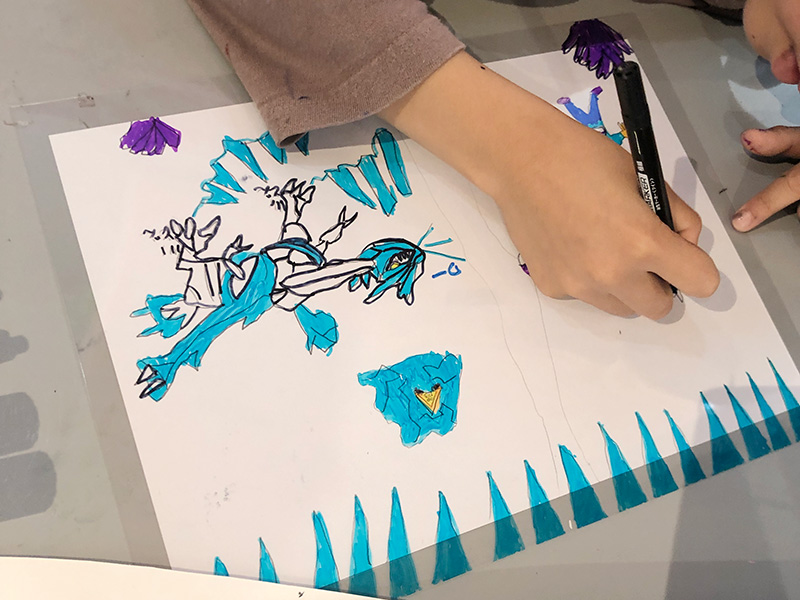 「暗闇の中」というテーマのもと、想像力を広げつつ、みんな素敵に描けました♪