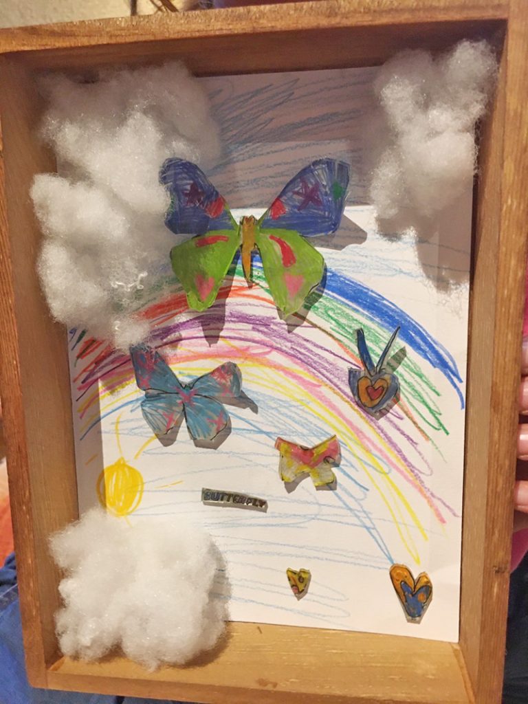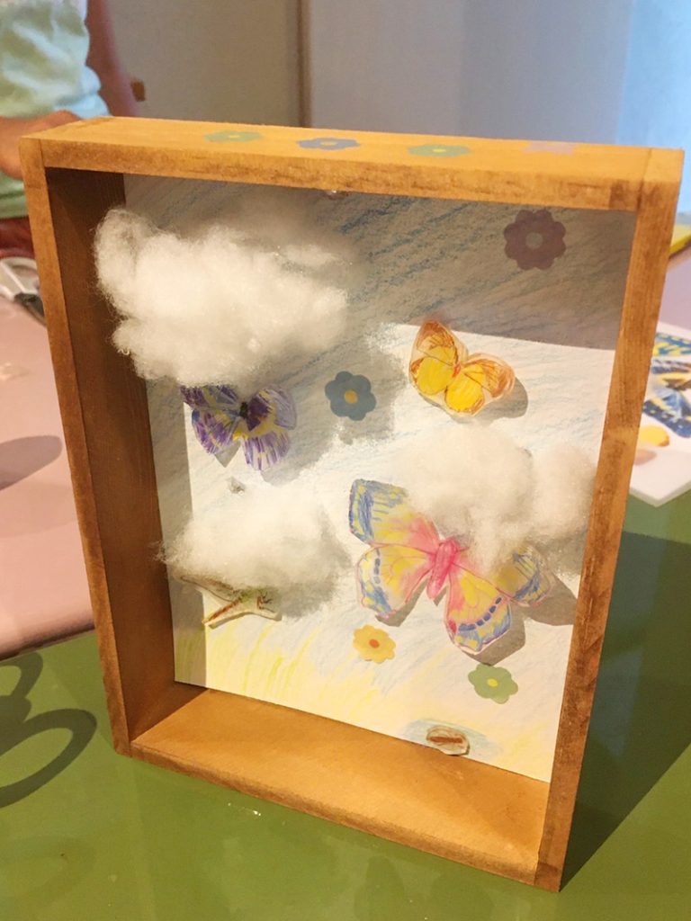 先日はプラバンと木箱を使って可愛い標本(箱庭?)な作品を作りました。