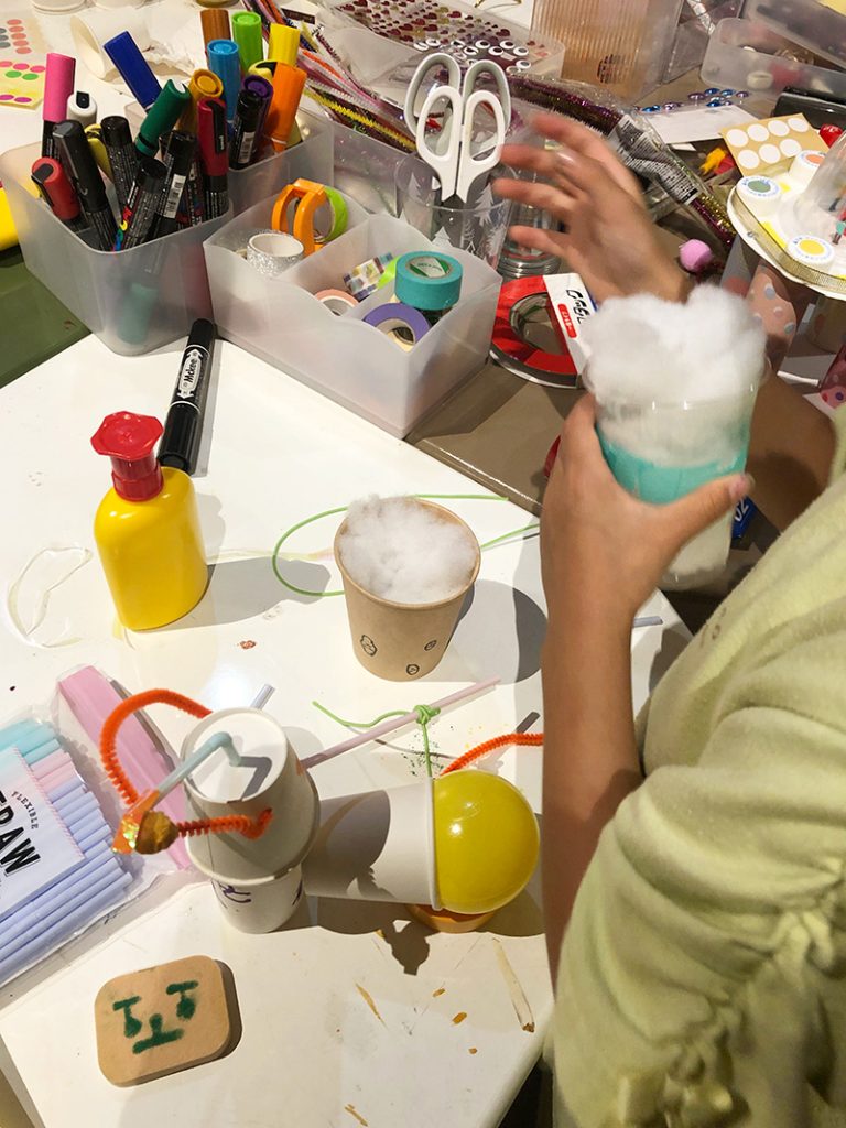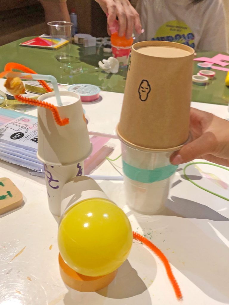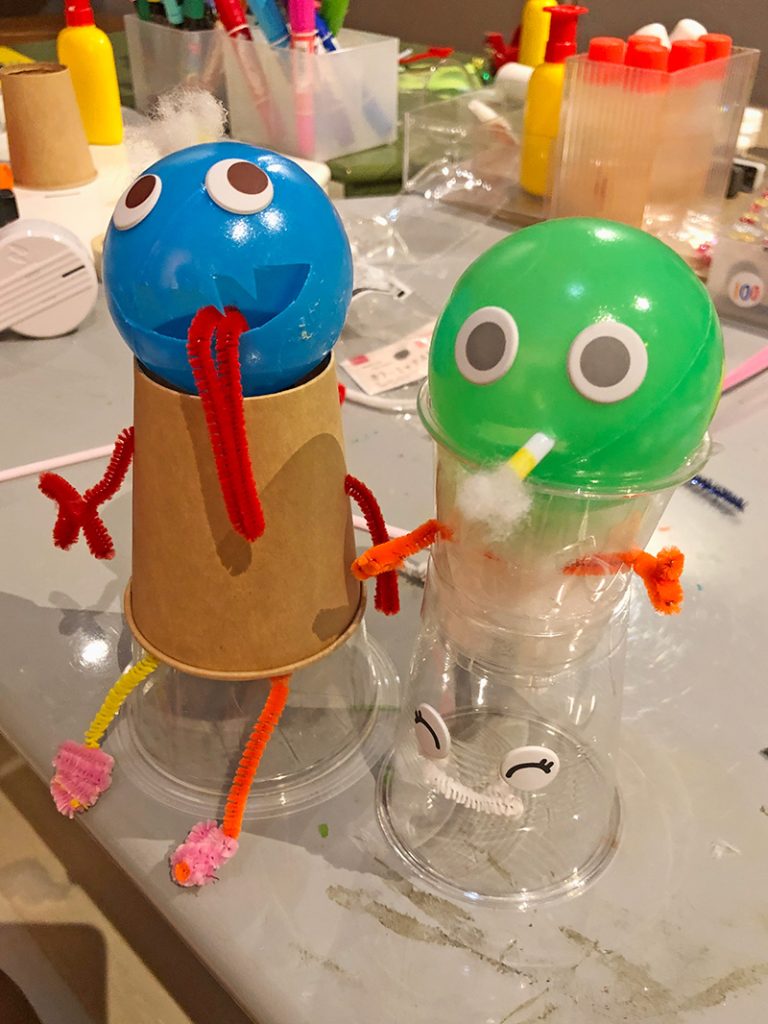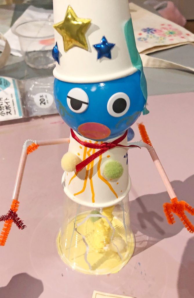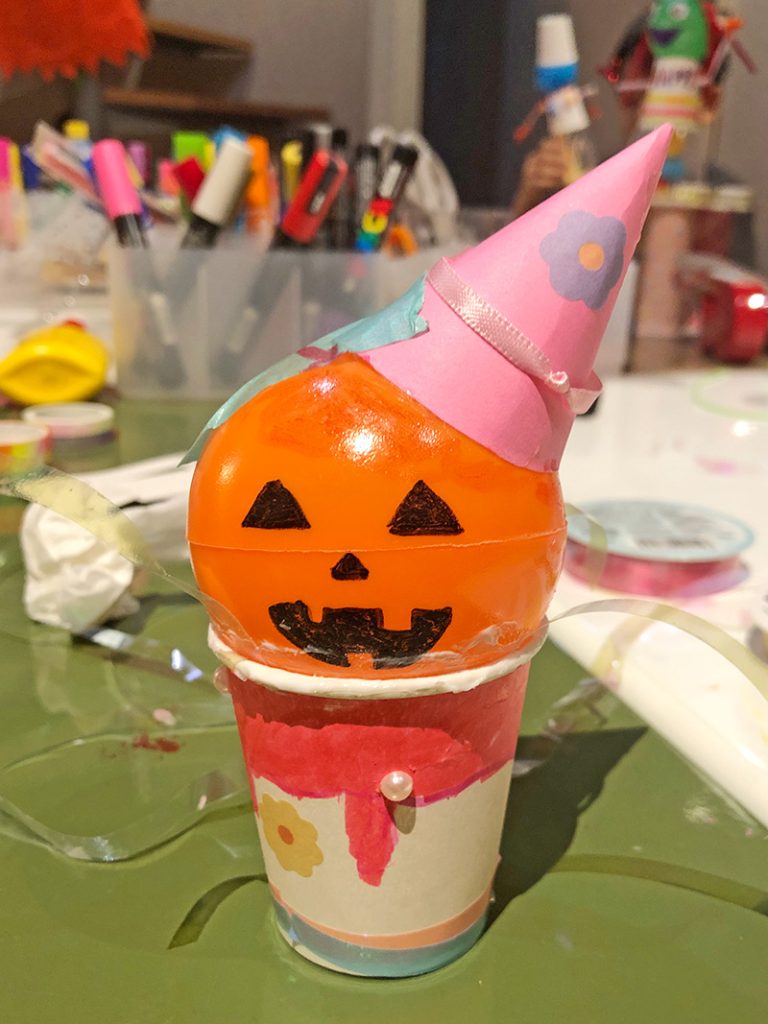 10月はハロウィン 投稿日: 2024年11月14日2024年11月15日 投稿者: Yukio Kaoru こんにちは。こまこまアートです。10月になり、ようやく秋らしい風が吹くようになりましたね。 今週の課題は紙コップやビニールボールで作る自由工作です。ハロウィンだから、ということもあってモンスター?お化け?を作る子が多数! かわいいかわいい〜!ストローを挿したり、接着したり・・・といった技術的なフォローだけ大人がサポートし、あとは子どもたちが自分たちの感性でグイグイと作ってくれました。 素敵な作品がたくさんできましたね!