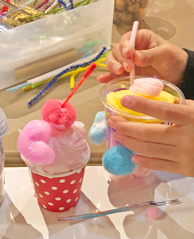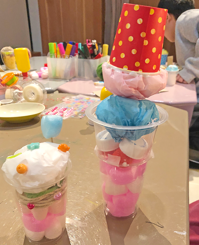 もうすぐバレンタインなので「お菓子」をテーマに工作をしました。