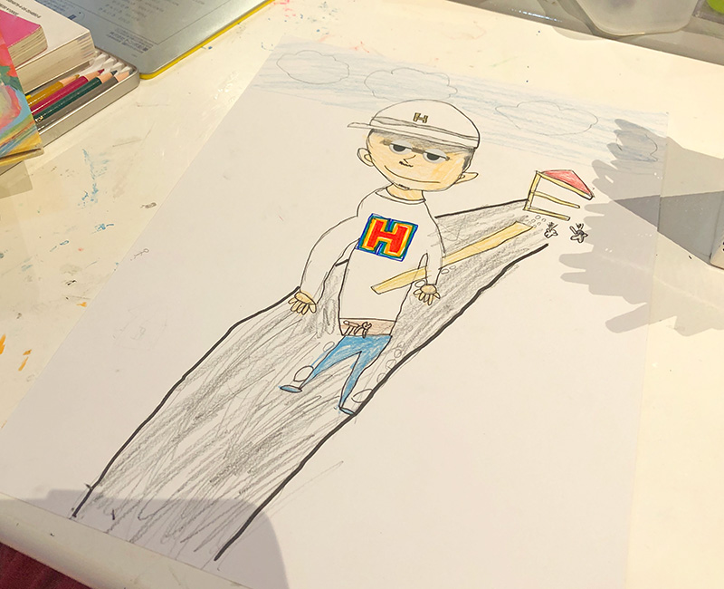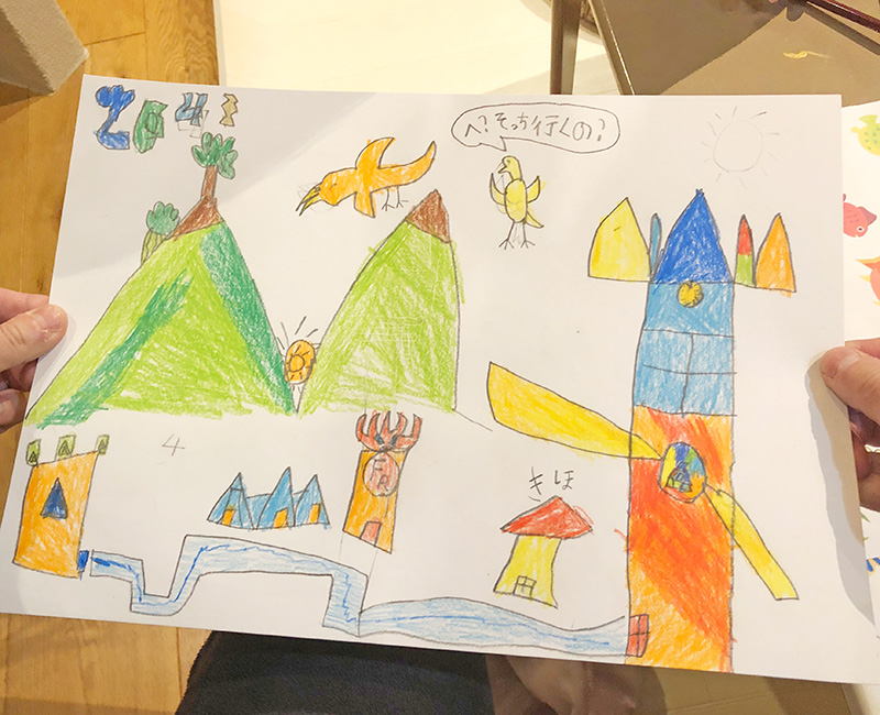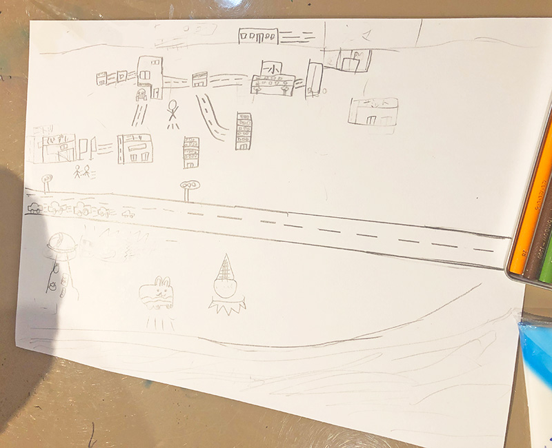 前回は「住みたい家」をテーマに絵を描きましたが今回は「住みたい町」もしくは「住みたいところ」をテーマに絵を描きました。