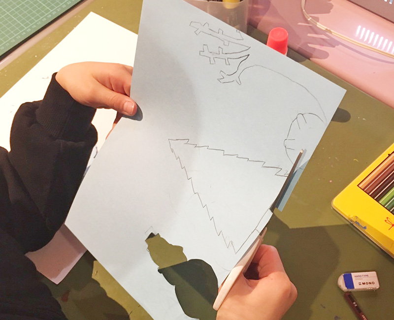 1〜2年生にとっては細かなハサミ使いが難しかったこのテーマ。でもみんな果敢にチャレンジしました!